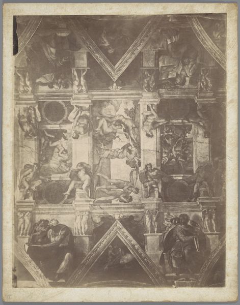 This is a photographic reproduction of Michelangelo's fresco, "The Separation of Light from Darkness," on the Sistine Chapel ceiling, created by an anonymous photographer. Photography in the 19th century played a crucial role in democratizing access to art, particularly monumental works like the Sistine Chapel, located within the Vatican. Consider the politics of imagery: how does the dissemination of religious art through photography affect its aura and authority? Michelangelo's original was a product of High Renaissance Rome, deeply intertwined with papal power and the Catholic Church's cultural dominance. The fresco, part of a larger narrative of creation, reinforced religious doctrine and the Church's role in interpreting it. This photo challenges the institutions of art. By reproducing and circulating it, the photographer subverts the art world by making it more widely available. To understand this photo fully, we might research the market for art reproductions, the development of photographic techniques, and the Vatican's attitude towards the reproduction of its treasures.