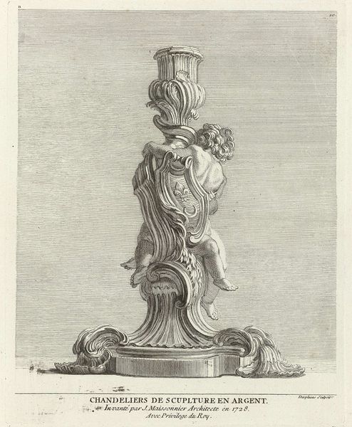 Editor: Here we have a print from somewhere between 1794 and 1828, attributed to Ludwig Gottlieb Portman. It’s titled "Statue of Laurens Jansz. Coster." It seems to be an engraving depicting a statue. I find the limited palette and the artist's use of line to create form really compelling. What compositional elements stand out to you? Curator: The engraving offers a neoclassical composition, quite orderly. The statue of Coster is centrally located. The statue rests on a cubic plinth. The statue displays idealised proportions, echoing the neoclassical obsession with harmony and balance. The artist emphasizes line, particularly in the drapery. Do you notice the interplay of light and shadow and the direction of the light source? Editor: Yes, the light seems to come from above and to the left. The shadows create depth, especially in the folds of the robe, highlighting the figure's form. Is the cityscape relevant or merely background? Curator: The architectural setting does provide context, but observe how it does not compete for visual dominance. Note how the paving stones, though patterned, lead to the more simplified plinth base. This progression guides the eye upwards, underscoring the statue's prominence as the central form. Also consider that its monochrome treatment reduces the background elements' impact on the statue. This promotes a sharp figure/ground distinction to allow us to isolate and study the aesthetic properties of the portrait. Editor: That makes sense; it really draws all the focus onto the statue itself and the artist's skill in rendering it through this printmaking technique. I appreciate seeing the details in the statue and then realizing the landscape and neoclassical influence after analyzing its construction. Curator: Exactly! It's about analyzing how formal choices coalesce to give us the overall work.