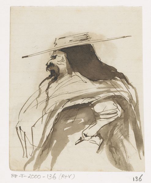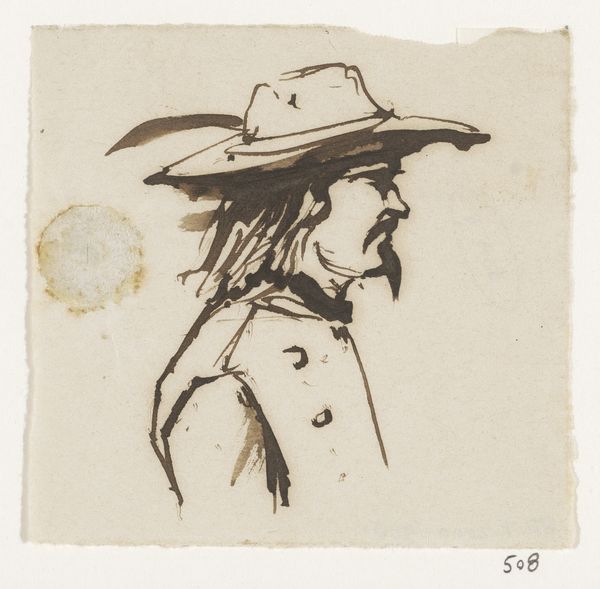 Editor: This is Sedrick Huckaby's "99% NO.73 Neighbor," a small drawing. I'm struck by the almost frantic energy of the lines, and the figure's shadowed face. What significance do you see in Huckaby's choice of imagery here? Curator: The figure's hat and the handwritten text surrounding him create a potent blend. The hat, a symbol of the American West, contrasts with the critical commentary on reverse mortgages. How might this visual juxtaposition speak to broader cultural anxieties? Editor: It seems to hint at disillusionment, maybe the fading promise of the 'American Dream'? Curator: Precisely! Huckaby uses familiar symbols to evoke complex emotions, connecting personal experience to collective memory. Food for thought!