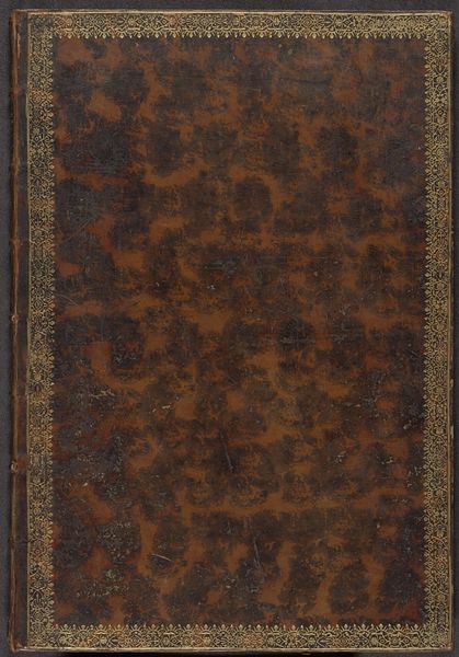 Editor: This mixed media piece, titled "Regtspleging van Oldenbarnevelt," dating from 1708 to 1795, is an intriguing find from an anonymous artist. It incorporates wood, marble, textile and prints. The swirled marbled pattern reminds me of looking at Jupiter’s atmosphere through a telescope. What’s your take? What catches your eye? Curator: Jupiter, eh? I like that. For me, it whispers secrets of a bygone era. You know, an anonymous piece always ignites my curiosity... Who poured their heart and soul into crafting this? Is it the bold, swirling patterns reminiscent of decorative art styles that intrigue me most, or perhaps it's the fact it feels so incredibly tactile, as if one could get lost running their fingers across the surface? And the mixed media aspect? A tapestry of texture. Tell me, what story do you think the artist was trying to tell here? Editor: I was thinking that maybe it was a personal diary, bound to preserve secrecy. The patterns feel organic. I’m also wondering why the artist chose these particular materials. Curator: A diary… hmm… Maybe! The wood, the textile, even the marble suggest permanence, don't they? Like a carefully constructed memory, guarded by layers. But then there’s the watercolor element, lending a fragility. Perhaps the artist was reflecting on the impermanence of even the most meticulously preserved histories or lives. Don’t you think it has a certain duality? Editor: Absolutely, the juxtaposition makes you think deeper about what is concealed and what’s revealed. Curator: Precisely. Art invites us to explore the beautiful contradictions, doesn't it? Even in the anonymity, or perhaps *because* of it. A tasty artistic morsel to mull over! Editor: Thanks, that gave me a lot to consider about intention and the artist’s choices of materiality. I have so much more to research now.