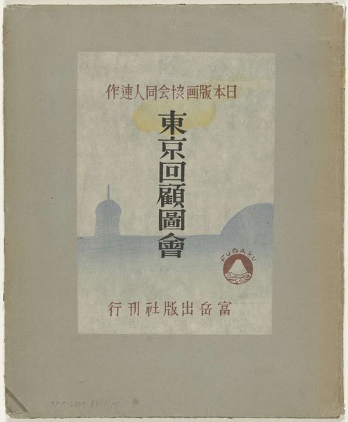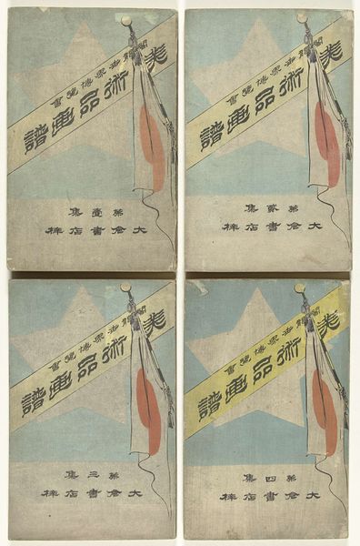 Editor: This woodblock print from 1893, by Kubota Beisen, titled *Prentenalbum met kunstvoorwerpen - deel één*, feels incredibly striking. The Japanese flag overlaps text and a barely visible geometric figure in the background, creating a compelling design. What's your take on this piece? Curator: Immediately, I'm drawn to the symbolism layered within this print. The Japanese flag, of course, carries its own weight of national identity and history. But consider how it interacts with the text—an invitation, perhaps, to an art exhibition. Does the superimposition suggest a merging of art and national pride? Or something more complex? Editor: That’s interesting; I hadn’t considered the layers of meaning embedded there. Is the geometric form behind the banner intentional, or could that be a random element? Curator: Nothing in art is truly random. I see a muted star – potentially representative of aspiration and guidance – deliberately faded to prevent upstaging the central tension between language, culture, and identity, boldly declared by flag and text. Consider, too, the Ukiyo-e tradition and how everyday life and commercial imagery often blended into high art. What sort of continuity do you detect? Editor: Thinking of Ukiyo-e prints makes me consider how the poster functions as an invitation to view the art – advertising combined with symbolism. Maybe the goal was both to express something meaningful and to attract visitors. Curator: Precisely! This isn’t just an aesthetic statement. It's a carefully constructed cultural artifact – reflecting the aspirations and values of its time while actively inviting participation in the ongoing cultural conversation. Editor: I appreciate how you connected those layers for me, I didn’t even consider commercial function at all, seeing only art in its form! Curator: And that’s how we continue to enrich and understand artworks, as a layered process.