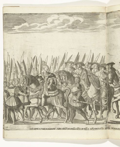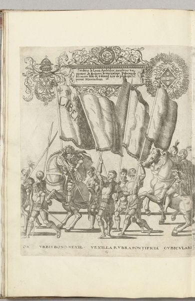 Nicolaas Hogenberg created this print, ‘Vaandeldragers, plaat 6,’ using engraving techniques sometime around the 16th century. The image depicts a procession of flag bearers, armored soldiers, and horse riders. The flags are emblazoned with symbols of authority and the word ‘Libertas’ or ‘Liberty’ suggesting a commentary on civic identity. Hogenberg was working in the Netherlands at a time of significant political and religious upheaval. The Dutch Revolt against Spanish rule was fueled by desires for political and religious freedom. Given this context, this print seems to be about the public role of civic institutions at a time of war. Is it self-consciously progressive? The image hints at a political movement centered on the idea of freedom. As historians, we might consult pamphlets and other printed materials from the period to investigate the social conditions that gave rise to this imagery. By understanding the context, we may discover the artwork's meaning as something contingent on social institutions.