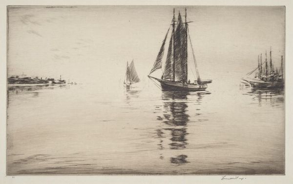 This is "Full Tide," a print created by Levon West, an American artist of the early 20th century. Here, the sailboat, cutting through the water, is not merely a vessel. The boat's journey is a symbol deeply embedded in our collective consciousness. Think of the ancient Egyptian's solar barques, carrying gods across the sky, or the ship of souls ferrying the dead to the afterlife. This motif transcends time, reappearing in various forms across cultures. The vessel speaks to our primal longing for passage, the eternal quest for what lies beyond the horizon. It is the human desire to find safety and orientation. Here, the boat and water serve as powerful symbols of passage and the subconscious, engaging us on a primal level. The journey continues, each voyage mirroring our personal and collective quest for meaning. The symbol resurfaces, evolving, and accumulating new layers of meaning in each historical context.