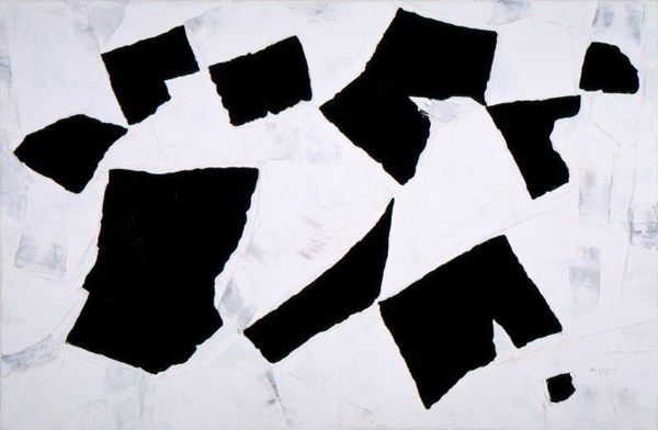 Curator: Looking at this artwork by Jean Arp, a collage constructed in 1917, one is immediately struck by its starkness. The work, titled "Squares or Rectangles Arranged According to the Laws of Chance," utilizes torn paper in blacks and whites. Editor: Stark, yes, but also playful! It's like the squares are doing a little dance across the canvas. I love the raw edges of the paper—makes it feel spontaneous, accidental, but somehow perfect at the same time. Like catching snowflakes, each one individual and perfect. Curator: It is crucial to acknowledge the piece was produced within the Dada movement. Dada rejected reason and logic, embracing nonsense, irrationality, and intuition. Arp relinquishing control, dropping the squares and letting them land where they may, directly reflects Dada’s anti-art stance. It's a purposeful embrace of chance and a challenge to traditional artistic creation. Editor: Exactly! It’s pure, rebellious chaos—beautifully arranged chaos. The way the shapes interact—the tension between the black and white—it's so simple but holds so much. There’s an unexpected balance that emerges from the randomness. It makes me question how much control we really have, not just over art but life, too. It is a little Zen moment. Curator: That concept of surrendering to chance also challenges the role of the artist. Arp's method begs the question: is the artist truly creating or merely curating the results of an arbitrary process? The beauty becomes almost secondary to the statement. Editor: Maybe the artist is both? Maybe creation lies in choosing to let go, to collaborate with chance. The artist provides a setting and sets conditions but relinquishes authoritarian command. Curator: Considering the period – the height of World War One – it's tempting to see the element of chance as reflective of the pervasive uncertainty of the time, a metaphor for lives disrupted and controlled by chaotic, seemingly random events. Editor: That’s an interesting point; it suggests that the randomness is not just an aesthetic choice, it echoes the emotional and cultural atmosphere during wartime. Looking closer now, the torn edges make it seem a little violent, distressed... it amplifies those raw, unpredictable feelings. Curator: Ultimately, "Squares or Rectangles..." provokes contemplation about artistic control, intentionality, and how disorder shapes meaning. It encapsulates Dada’s spirit succinctly. Editor: For me, it's a reminder that beauty and order can be found even in randomness if you allow yourself to see it. Something profoundly liberating in that sentiment.