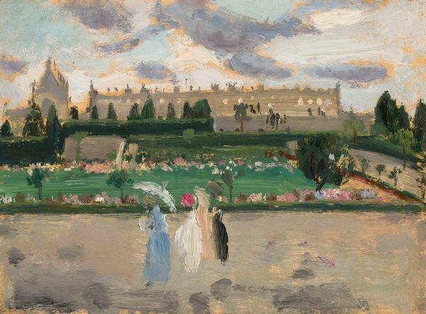 Albert Edelfelt painted this scene from St. Cloud Park in Paris to capture a moment of leisure and social interaction. He was a Finnish painter who spent time in Paris, and this work reflects his engagement with the aesthetic values of the late 19th century. The painting offers us a snapshot into the lives of upper-class women in Parisian society. Elegantly dressed, they stroll through the manicured park, embodying ideals of femininity and refinement. But there is also an implicit recognition of the social and economic structures that afforded these women such leisure. Their clothing, bearing witness to the constraints and expectations placed upon women of the time, also speaks volumes about their identities. In its depiction of a serene park scene, the painting reflects a moment in time where questions of identity, class, and gender intersect within the broader context of Parisian society. It invites us to consider the complex interplay between individual experiences and the larger societal forces that shape them.
