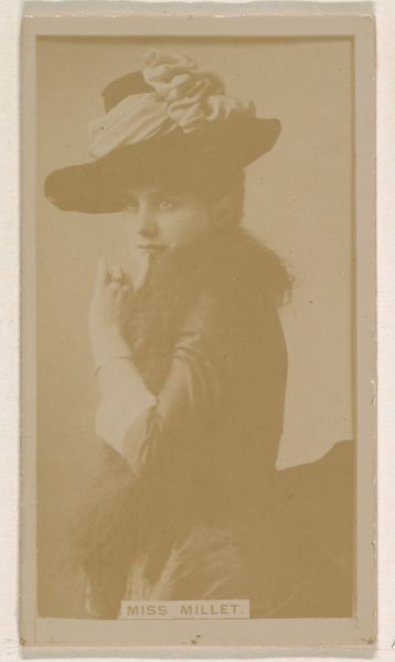 Curator: Before us, we have Harrison Fisher's "Untitled," a work that seems to capture a fleeting moment of beauty. What springs to mind for you looking at this image? Editor: It has a dreamy, almost melancholy feel, wouldn't you say? Like a nostalgic echo of a bygone era with a restricted color pallette. Also the emphasis on fashion, in particular that elaborate hat makes one ask about how its manufacture relates to our culture and social status? Curator: Precisely. There is a romance here, undoubtedly influenced by the artistic spirit of Romanticism—but its filtered through the lens of academic portraiture. Fisher was well-versed in the style of his time, a master of capturing feminine grace. I feel like the delicate brushstrokes create a real feeling of longing, even a vulnerability to the subject. Editor: What about the hat itself? The use of what appear to be natural materials in it construction, possibly feathers. What can we ascertain of the acquisition and commodification involved in turning living animals to aesthetic embellishments for wealthy consumers? That is another interesting question arising out of materiality. Curator: You raise a complex question about our relationship to nature in the construction of these idealized images of beauty. As an artist, though, I feel drawn to the very tangible sensation I experience when looking into those eyes. Editor: Indeed, it invites consideration of beauty's construction—both within the frame and in a larger societal context. Curator: True. I also think the slightly cartoonish presentation suggests some kind of satirical commentary. The tension in a lot of women’s illustration is related to commercial interests. It is always there under the pretty presentation, and I cannot but take note of this artist's involvement in those conditions. Editor: Yes, quite illuminating, I must admit. By discussing the subject matter of production we gain some interesting perspectives for contemplating Fisher's piece.