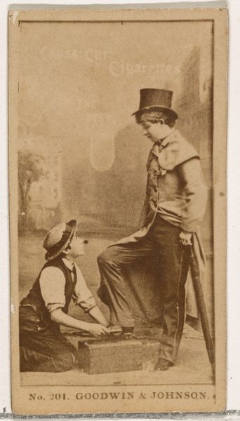 This is Card Number 48, Falka Sisters, from the Actors and Actresses series, made in the United States around 1888 by W. Duke, Sons & Co. as a promotional item for Cross Cut Cigarettes. The card depicts the Falka Sisters, embracing one another in costume. The cultural context of this card lies in the rise of consumer culture and mass media. Tobacco companies used collectible cards to promote their brands, tapping into popular interests like theater and celebrity culture. The image itself is a window into the world of late 19th-century entertainment. The Falka Sisters were likely stage performers, and their depiction here reflects the growing popularity of actresses and the theater. The card, like other similar commercial images, offers insights into the social conditions that shaped artistic production and consumption during this period. To fully understand the card's meaning and significance, we can turn to theater and advertising history, as well as social and cultural studies of the late 19th century United States. Doing so reveals the complex interplay between art, commerce, and identity in shaping cultural values.