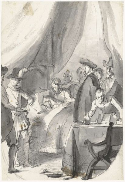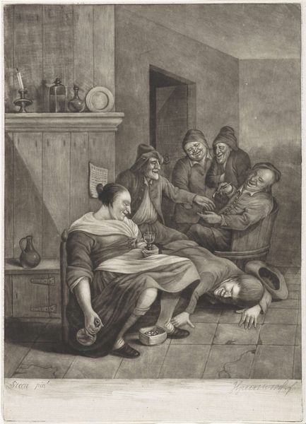 Editor: This gelatin silver print, titled "Fotoreproductie van het schilderij 'Kinderen leren een poes dansen, bekend als 'De dansles'," created between 1893 and 1912 and housed in the Rijksmuseum, offers a glimpse into a past painting by Jan Havicksz. Steen. The scene is certainly lively, filled with children, animals, and instruments, but the subdued tones of the photographic print give it an aged quality. What can you tell me about the making and circulation of reproductions such as this? Curator: Considering its existence as a photograph of a painting, we must think about the layers of labor involved. First, Steen’s original construction, the arrangement of figures and domestic items – inherently displays a specific mode of Dutch Golden Age artistry. But now look at the photographic reproduction process. Who made this gelatin silver print? What does it mean that someone reproduced the original image through photography? Think about it this way – we have to ask about access to art and the consumption habits in that time period. Editor: That makes sense. The photographic print makes Steen’s painting available to a broader audience, detaching it from the exclusive world of art collectors. Is this what we should focus on when interpreting a photograph like this? Curator: Precisely. The act of reproduction inherently alters the consumption of the image and questions traditional art historical boundaries. Was this photo intended for scholarship, wider consumption by the public, or both? Editor: So by focusing on the means of production and circulation, we can unpack broader social and cultural meanings embedded in the image. Curator: Exactly. By thinking about process, materials, and their historical context, we go beyond aesthetics. Editor: That's fascinating. Thinking about it in terms of its production opens up many doors of thought that otherwise stay hidden. Curator: Indeed, it pushes us to investigate photography's complex role in mediating our relationship with art.