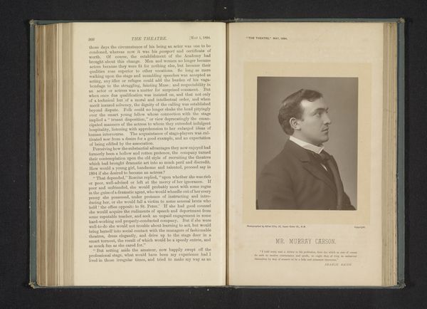 Editor: So, this is a portrait of Henri Matton, taken before 1901 by Edouard Adelot. It’s a photograph, so it’s a realist depiction. There is a formal and contemplative mood, and I’m curious to know, what’s your interpretation of this image? Curator: Looking at this photograph through a historical lens, I’m struck by how carefully constructed it is. The pose, the lighting, the setting… It speaks to the conventions of portraiture in the late 19th century and also the rising prominence of photography. Who do you think this image was created for, and how do you imagine it being consumed by the public? Editor: Perhaps it was for the elite to document their likenesses in a modern way? Unlike painting, photography might have been seen as democratic, available to more social groups… Curator: Precisely! It would democratize the practice, yet at the same time, the carefully staged and rather severe portrayal here seeks to lend dignity and importance to the sitter. There’s a push and pull between accessibility and the reinforcement of social hierarchy that's evident in many photographs of the time. It shows a negotiation between art, technological innovation, and power structures. Editor: I hadn’t considered the negotiation piece like that, very interesting to think about how photography both challenged and upheld social hierarchies in that period. I see what you mean by democratisation through this medium but how its public role has to be viewed under certain socio-political rules. Curator: Exactly, and seeing those elements intertwined truly illuminates the moment this image was made, its cultural value and relevance.