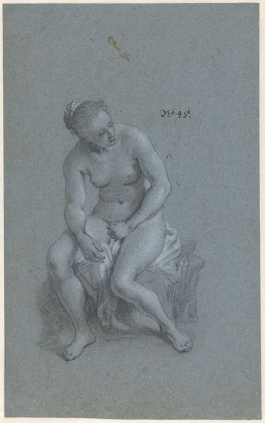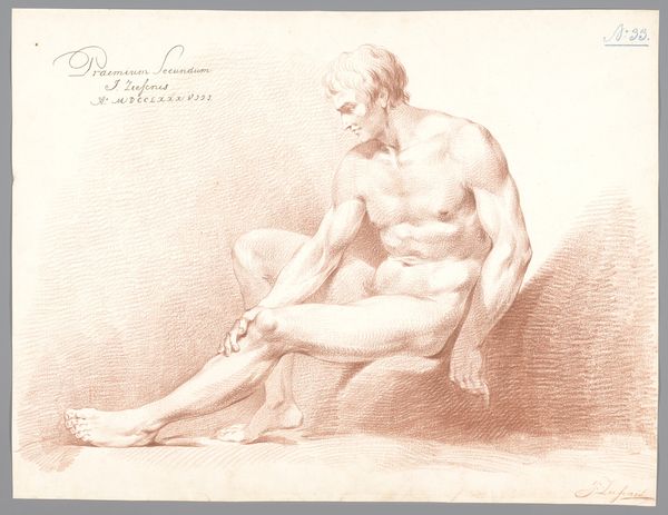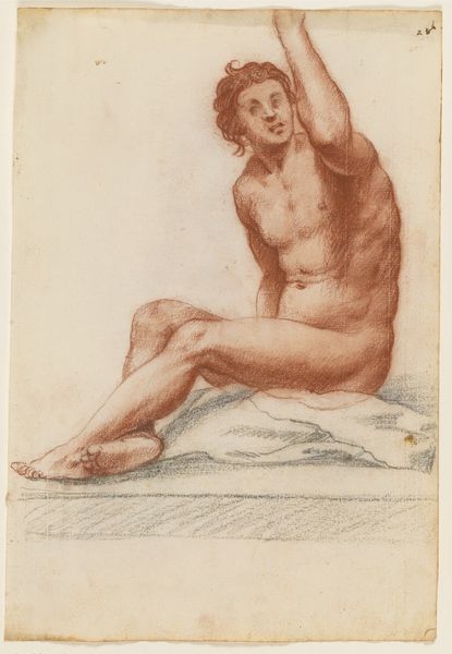 Francois Boucher rendered this drawing of a seated female nude in the mid-18th century, using red chalk on paper. It's a traditional approach, and the appeal is evident: chalk yields a soft, luminous quality, ideal for capturing the nuances of the body. But think about the labor involved. Chalk doesn't just appear; it must be quarried, processed, and refined. Paper requires the same kind of work, made from cellulose pulp obtained from cotton or linen rags, then pulped, laid out, and dried. Boucher's mastery lies in transforming these earthly materials into something ethereal. Yet, we shouldn’t forget the economic context in which this drawing was made. It represents a leisure class, able to enjoy art that depended on considerable labor for even the simplest of materials. By recognizing this, we can appreciate the work as more than just a pretty picture; it's a document of its time.