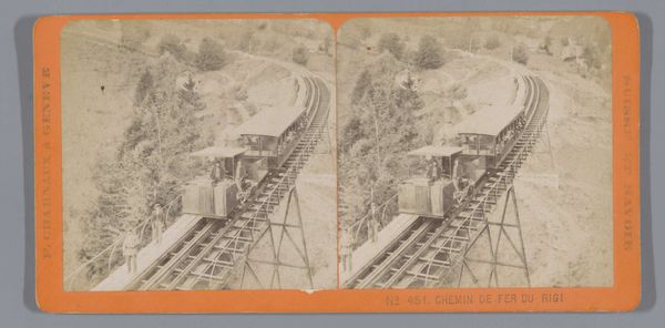 Editor: This is an albumen print dating between 1864 and 1900, titled "View of the cable car between Bad Ems and the hotel on the Malberg," created by L\u00e9on & L\u00e9vy. It gives me this strong sense of burgeoning modernity against a backdrop of natural grandeur. I wonder, what historical perspectives does this image open up for you? Curator: Well, viewing this through a historical lens, this image embodies a significant shift. We're seeing the democratization of leisure facilitated by new technologies. Prior to these railways, mountainous landscapes like this were only accessible to a privileged few. Does the composition hint at who might be using this service? Editor: Hmm, I'd say the composition is very linear and upward-focused. The gaze is naturally drawn towards the hotel atop the Malberg. Perhaps suggesting aspirations and the rising middle class being able to now access previously elite activities? Curator: Precisely. Consider also how photography itself contributes to this narrative. Photography, rapidly advancing in this period, captures and disseminates these images of progress. Does that suggest anything about intended audiences or propaganda? Editor: That's interesting! The mass production of this photograph and its dissemination could actively shape perceptions of Bad Ems as modern and aspirational...almost advertising its availability. It feels very much connected to place-making through imagery. Curator: Exactly. And in many ways, prefigures our contemporary obsessions with travel photography and social media’s role in shaping tourist destinations. What do you take away from this observation? Editor: It highlights how photography functioned within specific power dynamics, promoting certain narratives around tourism and progress, and how these mechanisms remain potent today. I'm now more aware of the cultural framing that shapes a landscape. Curator: I'm so glad. Paying attention to who makes images, who consumes them, and under what conditions really unlocks fascinating socio-political histories.