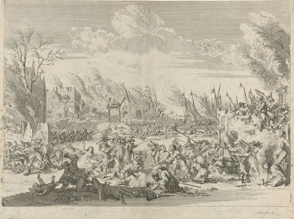 Joseph Mulder created this print titled 'Slag van Lekkerbeetje' around 1700 using etching techniques. This image offers a window into the Dutch Republic's self-fashioning during its Golden Age. Battles like the one depicted here were crucial in defining the nation's identity. But how does Mulder, working decades later, shape this memory? Note the chaotic yet ordered composition, common in battle scenes, which emphasizes Dutch courage and strategic prowess. The print also speaks to the era's burgeoning print culture, where images played a vital role in shaping public opinion. Studying period publications, pamphlets, and other visual materials can provide deeper insights into the cultural and political meanings embedded in this work. What was the role of the Rijksmuseum, where this image is housed, in shaping Dutch national identity? By looking into these sources, we can understand how art both reflects and actively shapes the social and institutional contexts of its time.