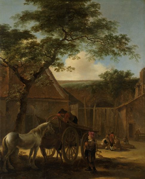 Antonio Diziani painted this rustic scene, using oil on canvas, around the mid-18th century. In it, we find a snapshot of rural life, likely somewhere in Italy, where Diziani was based. The painting gives us insight into the hierarchical nature of society at that time. The composition draws a clear distinction between the elevated architecture and the lower ground where the peasants conduct their daily activities. This division serves as a visual metaphor for the social stratification inherent in 18th-century European societies, with the upper classes literally and figuratively looking down upon the laboring masses. To fully understand the painting’s commentary on social structures, we might consult agricultural records, social histories, and even literary texts from the period. Art, after all, does not exist in a vacuum; its meaning is always contingent on its social and institutional context.