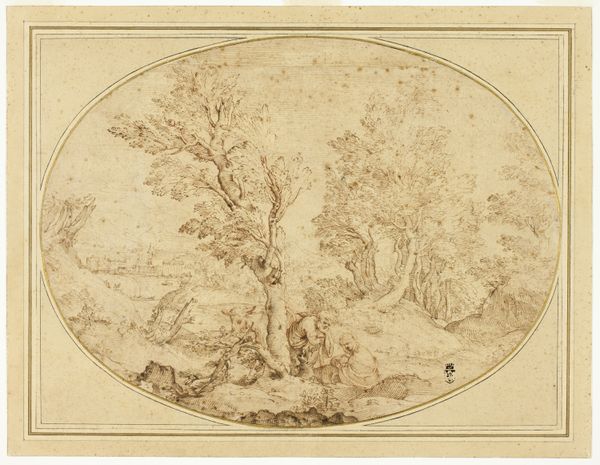 Giovanni Francesco Grimaldi created this ink drawing, titled "Pastoral Scene," sometime in the 17th century. Grimaldi, an Italian architect and painter, spent much of his career in Rome, where the Catholic Church heavily influenced artistic expression. In "Pastoral Scene," the artist presents an idealized vision of rural life. Yet, what does this romanticized view obscure? The lives of peasants were often marked by poverty, disease, and social inequality, starkly contrasting the tranquility depicted here. The figures in the foreground seem undisturbed by the socio-economic realities of the time, as they are passively enjoying nature. By focusing on leisure and harmony, Grimaldi's drawing, while beautiful, may inadvertently sanitize the complex social dynamics of the era, reinforcing a divide between the idealized and the real. How do we reconcile the aesthetic pleasure of such works with the knowledge of the hardships endured by so many?