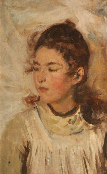 Konstantin Makovsky captured his daughter Olya in this intimate portrait, employing oil on canvas to render a delicate likeness. The composition centres on Olya’s face, framed by soft, diffused lighting and a muted colour palette, creating a dreamy, idealized impression. The artist's brushwork is loose yet controlled, particularly noticeable in the subtle gradations of skin tone and the intricate rendering of her hair. This technique not only softens her features but also lends the portrait an ethereal, almost timeless quality. Makovsky's strategic use of light and shadow accentuates Olya’s youth and innocence, inviting viewers to contemplate notions of beauty and familial affection. While seemingly straightforward, the artwork subtly challenges traditional portraiture through its intimate focus. It offers a contemporary reflection on identity and representation within the context of late 19th-century Russian art.
