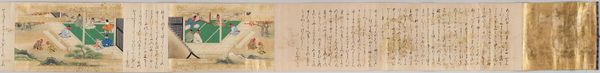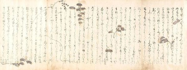 Curator: This book, attributed to the style of Monk Jien, contains Chapter 52, “The Mayfly,” from the famed Tale of Genji. Editor: It gives the impression of ephemerality, doesn't it? The delicate calligraphy almost floats on the textured paper, like fleeting thoughts. Curator: Indeed. The Tale, written in the early 11th century, provides a rich cultural context for understanding gender roles and courtly life in Heian-era Japan. The "mayfly" chapter itself explores themes of transience. Editor: The symbols, especially the calligraphy itself, speak to a tradition steeped in aesthetic and philosophical weight. Each brushstroke seems deliberate, imbued with meaning beyond the literal text. I see echoes of Buddhist concepts of impermanence. Curator: Absolutely. Understanding the social and political climate of the time further illuminates the nuances of relationships and power dynamics depicted in this chapter. Editor: It all comes together—the visual elements mirroring the narrative's meditation on life's brevity. Curator: Precisely. This small book opens up vast perspectives. Editor: A powerful reminder of how art can reflect, refract, and reshape our understanding of existence.