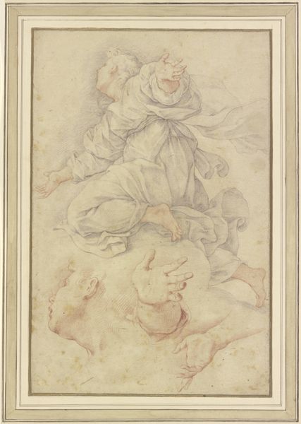 Editor: Here we have Mauro Gandolfi's "Vignette with an Allegorical Figure of Astronomy," made between 1793 and 1803. It's a drawing that incorporates colored pencil and watercolor elements, now residing at The Met. I'm immediately drawn to the dreamlike quality and ornate frame. What do you make of this piece? Curator: Ah, yes, Gandolfi! It feels like a peek into a celestial boudoir, doesn’t it? Notice how Astronomy reclines so languidly, holding that globe—almost like a fashionable accessory. But beyond the Rococo frills, I see a deeper tension. Editor: Tension? Between what? Curator: The old and the new! Gandolfi created this right when Enlightenment reason was wrestling with Romantic sensibilities. Look at that putto brandishing a torch! Is he illuminating the path of knowledge, or just setting things on fire with passion? It’s playful, but also profound. What does it spark in you? Editor: I guess I see the torch as representing innovation. I also appreciate that she isn’t depicted as the ideal goddess; instead, her messy robes almost look like she threw something comfortable on while working. Curator: Exactly! It hints at a world increasingly fascinated by science but still clinging to classical ideals. That tension, that push and pull, makes it such a captivating piece, don't you think? Editor: Definitely! It’s like Gandolfi is saying, “Let’s explore the universe, but make it fashion!” I hadn’t thought about it that way initially but now it's apparent. Curator: And maybe he is also challenging us to find the beauty in the blend. Art often invites us to find new ways to interpret life.