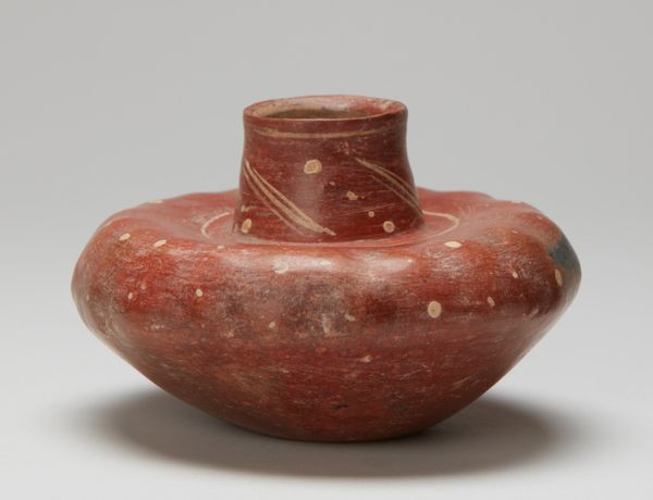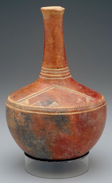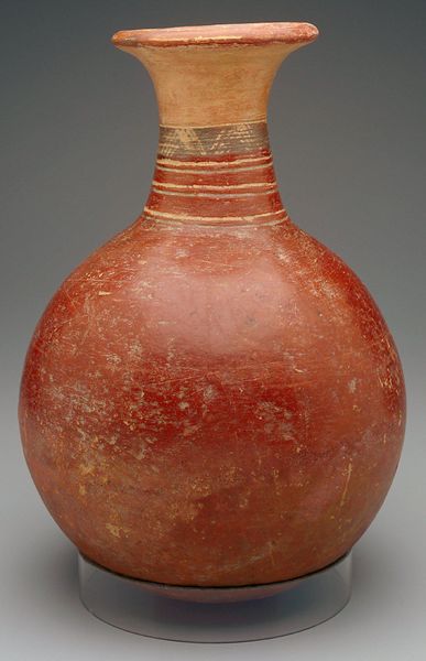 This bottle was created by an artist or artists of the Mississippian culture, a Native American civilization that flourished in what is now the Midwestern, Eastern, and Southeastern United States. Imagine the world in which this bottle was crafted. The Mississippian people were deeply connected to the earth, their lives and rituals intertwined with the cycles of nature. The bottle’s form and decoration may reflect this connection, perhaps echoing the shapes and colors of the natural world. Consider the role of women in Mississippian society. As primary caretakers and artisans, they likely played a significant role in the creation of pottery. This bottle may have been made by a woman, for practical use, or perhaps for ceremonial purposes. Looking at this bottle, we might reflect on how art objects can carry the weight of cultural memory, connecting us to the experiences and beliefs of people who lived long ago. This bottle embodies the ingenuity, creativity, and spiritual beliefs of the Mississippian people.