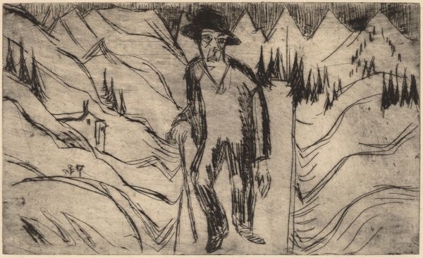 James McNeill Whistler created this etching, *Greenwich Pensioner*, in 1859. The image depicts a Chelsea pensioner reclining in a grassy field, evoking themes of leisure and reflection within the context of Victorian England. The Greenwich Pensioners were residents of the Royal Hospital for Seamen, founded in 1694. Whistler's choice of subject matter reflects a broader interest in representing contemporary life, while also engaging with established artistic traditions of portraiture and genre painting. His technique, with its emphasis on line and delicate shading, demonstrates an awareness of both classical etching and emerging trends in modern art. To fully appreciate *Greenwich Pensioner*, art historians consult a range of archival materials such as hospital records and demographic studies to learn more about the daily lives of the pensioners. By understanding these historical contexts, we gain insight into the cultural meanings embedded within Whistler's work and the complex social dynamics of his time.