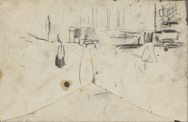 Editor: This is "Workers Loading Brushwood onto a Cart," a pencil drawing by Anton Mauve, made sometime between 1848 and 1888. The sketchiness gives it a raw, almost urgent feeling. What do you see in this piece? Curator: This drawing, though seemingly simple, provides a glimpse into the socio-economic realities of 19th-century rural life. The laborers, rendered with gestural strokes, are caught in the act of gathering wood – a crucial task for survival, especially for the working class. We need to ask ourselves, who were these workers, and what were their circumstances? Editor: So, it’s less about the beauty of the landscape and more about the people working within it? Curator: Precisely. The landscape isn't just a backdrop; it’s a site of labor and struggle. Consider the Realist movement, which aimed to depict everyday life accurately, often focusing on the lives of the poor and working class. Mauve's drawing participates in this tradition by bringing attention to the labor often unseen and unacknowledged. Do you think the lack of detail is a statement? Editor: That’s a good point. It could suggest the dehumanizing conditions of labor, by showing them faceless, anonymous. Curator: Absolutely. The sketchiness can be interpreted as a commentary on the transient and precarious nature of their existence. It challenges the romanticized view of rural life that was often presented at the time. And we can think about artmaking at this time too – the rise of sketching, which allowed art to capture rapid social change. Editor: I see that shift now. It’s powerful to think about how a simple drawing can unpack such complex social issues. Curator: Indeed. By engaging with the historical and social context, we gain a deeper understanding of the artwork’s significance and its connection to broader societal narratives of labor, class, and identity.