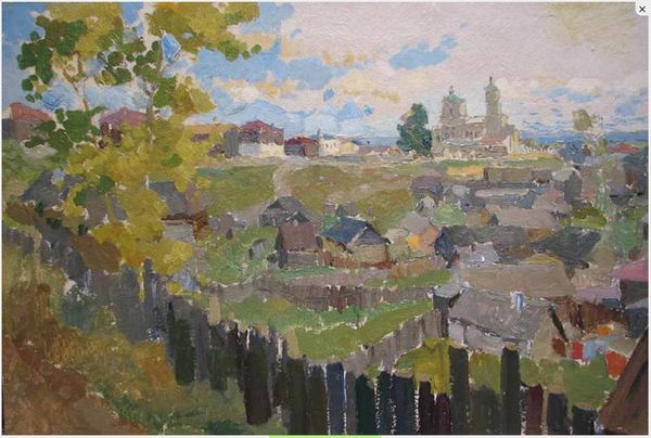 Constantin Piliuta's painting, At the Aunts, is a symphony of gentle greens and browns applied with an intimate, almost folksy touch, like a memory surfacing from a dream. The materiality here is everything, right? Look at the way Piliuta layers the paint, thin in some areas, creating a transparent veil, and thick in others, giving substance to the haystacks and those sweet little houses. I love how the brushstrokes aren't trying to hide; they're out there, dancing across the canvas, each one a testament to the act of painting itself. Take the hillside, for instance, those strokes almost read like blades of grass standing to attention, while the white impasto on the houses really pops. This painting reminds me of Milton Avery's landscapes, simple, direct, but full of emotional resonance. It's like Piliuta is saying, "Here's the world, not as it is, but as it feels." And isn't that what art is all about?