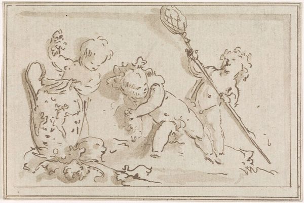 Cornelis Schut created this etching of two music-making putti. Winged putti, or cherubic children, became popular during the Renaissance, often representing divine love or playful spirits. Here, one putto energetically beats a drum, while the other joyfully blows a trumpet. Instruments such as these date back to ancient times and were often used in triumphal processions. They symbolize celebration and fanfare. In ancient Roman art, we see similar figures in scenes of Bacchic revelry. And these motifs re-emerge through time, in the Renaissance and Baroque periods, often adorning palaces and churches as emblems of peace and prosperity. In the collective memory, musical putti evoke a sense of nostalgia and longing for an idealized past, when the world seemed filled with harmony and divine grace. Ultimately, Schut's etching reminds us of the enduring power of symbols. They traverse time and cultures, resonating with our deepest emotions and subconscious desires.