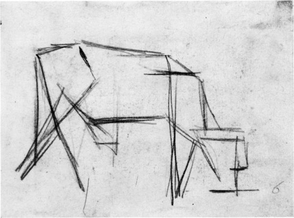 Theo van Doesburg made this small drawing, "Composition (The Cow)", at an unknown date with graphite on paper. The cow emerges from a dance of lines. It's all about how van Doesburg uses these basic marks to chase after an idea, playing with abstraction. Look at how he’s broken down the form into a series of lines, almost like he's searching for the essence of "cowness." There’s a real energy in those lines, some dark and decisive, others light and tentative. The way he layers and overlaps them creates this sense of movement, of a cow in thought, or maybe just chewing its cud. Check out the head area, how the lines converge, suggesting volume and weight without ever quite solidifying into a concrete form. You can almost feel him thinking through the drawing, each line a step in his process. It reminds me a bit of Picasso's studies, that same willingness to deconstruct and reimagine a familiar subject. Art’s like a big conversation, right?