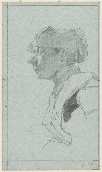 Curator: This is a small pencil sketch by Sanford Robinson Gifford, titled "Profile Study of a Soldier." It resides here at the Harvard Art Museums. Editor: The first word that comes to mind is "weary." The lines are faint, yet there's a palpable sense of exhaustion etched onto this soldier's face. Curator: Gifford, known for his Hudson River School landscapes, likely made this during the Civil War. Sketches like these served as preparatory studies, or perhaps captured immediate impressions. Editor: It's compelling to consider the power dynamics at play. Was this soldier a willing subject? Did Gifford fully grasp the gravity of the soldier's experiences, or was he merely aestheticizing war? Curator: The sketch's simplicity is deceiving. Gifford’s ability to convey so much with so few lines shows great skill and understanding of form. Editor: For me, it's a stark reminder of the human cost of conflict. It prompts us to reflect on the narratives we construct around war, and whose voices are often silenced. Curator: Looking at this sketch, I am reminded of how artists of the era used their craft to bear witness to the tumultuous times, trying to capture both the heroic and the human elements of war. Editor: It's a powerful piece, sparking important conversations about representation and the ethics of witnessing.