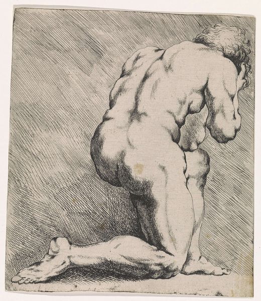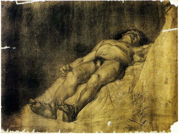 This drawing, "The Discus Thrower," by Vincent van Gogh, now at the Van Gogh Museum in Amsterdam, presents us with a dynamic figure rendered in monochromatic tones. The composition focuses on the athletic body in torsion, poised to release the discus, set against a backdrop of contrasting linear strokes. Van Gogh's use of hatching and cross-hatching not only models the form but also creates a palpable sense of movement and energy. The figure's musculature is emphasized through the stark contrast of light and shadow, indicative of Van Gogh's interest in depicting physical labor and the human form. The classical subject matter is filtered through Van Gogh's expressive style, a fusion of tradition and modernity. Consider how the diagonal lines in the background might suggest an unstable space, challenging classical ideals of harmony. This approach disrupts traditional representation, highlighting the artist’s subjective interpretation. The unfinished quality invites ongoing engagement with the artwork.