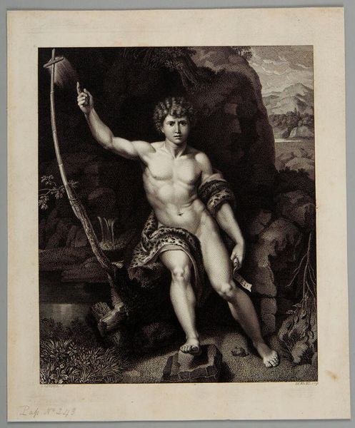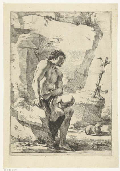 This drawing of a nude shepherd boy by Jan Tersteeg was made sometime around the turn of the nineteenth century. In this image, we see a romanticized view of rural life, popular at the time. The figure's idealized physique and classical pose, combined with the natural setting, evokes a sense of harmony between man and nature. This recalls the artistic conventions of ancient Greece and Rome, and the Neoclassical movement which drew on these. But, the Netherlands in this period was undergoing significant political and economic change, and Tersteeg's artwork could be interpreted as a commentary on the longing for a simpler, more idyllic past. His work invites us to consider the social conditions that shape artistic production. To fully appreciate the image, one might explore the cultural and political climate of the Netherlands at the time, including the influence of classical art, the rise of nationalism, and the changing role of the Dutch Republic in Europe.