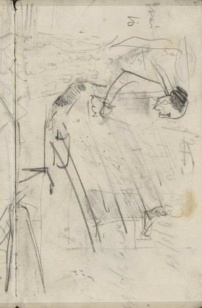 Jac van Looij made this pencil drawing, "Sitting Man in a Theatre," on paper at an unknown date. Van Looij here depicts a theatre interior from the perspective of an audience member. The quick sketch captures the atmosphere of a public performance space, hinting at social class and leisure activities. The man's hat and suit suggest a certain level of social status, while the theatre setting implies cultural engagement. We know that Van Looij, living in Amsterdam at the turn of the century, was engaged in artistic circles. It's important to remember the social conditions that shape artistic production. Was van Looij critiquing the institutions of art? Understanding this work requires looking into the history of theatre and leisure in Amsterdam during the late 19th and early 20th centuries. Research into theatre programs, social events, and audience demographics might reveal more about the drawing's context. By exploring the world in which Van Looij created this image, we can better appreciate its role as a cultural and social document.