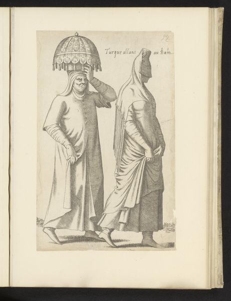 Léon Davent created this print, "Turkse geestelijke van de orde der Torlaquis of Torlacchis", sometime between 1540 and 1556. Davent was working during a period of increasing cultural exchange and conflict between Europe and the Ottoman Empire. This work reflects early modern Europe's fascination with and often misinformed depictions of the "Orient." The print presents two figures, presumably religious clerics. The costuming is rendered with a mix of accuracy and exoticization which would have been perceived as conveying specific cultural identities. These representations are not neutral; they are loaded with the biases and limited understandings of the time. How does Davent perpetuate stereotypes, and what might have been his intentions or the expectations of his audience? This work isn't just a depiction; it's a statement about cultural difference and power.