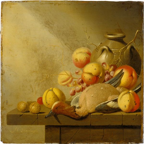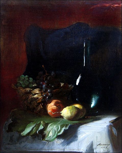 Frank Mason made this still life of apples with oil paint. It's like he set up a little stage, everything caught in a beam of light against the dark. You can see the making in the buttery strokes, especially in the highlights on the apples and that crumpled cloth. It’s not just about making things look real, but about the joy of pushing paint around. It’s a bit like Corot, but with apples! There’s a dark, almost spooky background, and then this intimate spotlight on the mundane. The apples are so round and glossy, and the basket is very present. Like a solid form made of real woven material. It’s a funny contrast, and it gives the painting this weird, melancholic vibe, like a memento mori that you can snack on.