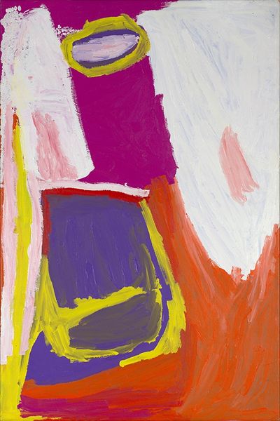 Sally Gabori made "My Country" using bright colors, probably acrylic on canvas, and it feels like a direct, almost childlike, way of putting paint on a surface. This isn’t a weakness, but a strength. The materiality of the paint is really upfront. You can see the marks of the brush, the texture of each stroke. This emphasis gives the piece a real sense of immediacy, and almost a feeling of being immersed in the landscape of Gabori’s homeland. Look at the way that intense pink pushes against the turquoise, and the small dark shape in the middle. It's like a cave or some kind of portal, inviting us to wonder what it contains. "My Country" reminds me a bit of the work of Forrest Bess, a painter who also came to art from a place of pure intuition. Both artists seem to be channeling something primal and deeply personal. It’s a reminder that art can be about opening up possibilities rather than closing them down with fixed interpretations.