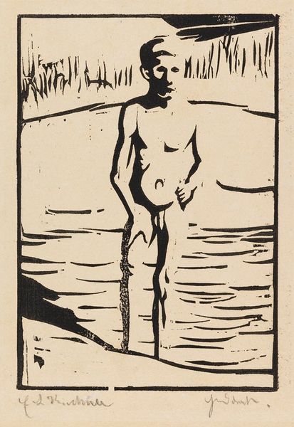 Edvard Munch created this compelling woodcut print, "The Scream," using stark black lines on paper. The power of the work lies in its composition. We see a figure in the foreground, hands pressed to their face, mouth agape in what we can only interpret as a silent scream. Munch masterfully uses distorted lines to convey intense emotion. The swirling lines in the sky and the jagged lines of the landscape seem to echo the figure’s inner turmoil. The linear perspective of the bridge draws our eyes towards the background, where two figures stand, seemingly oblivious to the anguish in the foreground. This dramatic contrast creates a sense of isolation and existential dread. The figure's scream is not just a personal expression of pain but a symbol of modern alienation. The print challenges our perception, turning a landscape into a psychological space, and continues to resonate, prompting us to confront the complexities of human emotion.