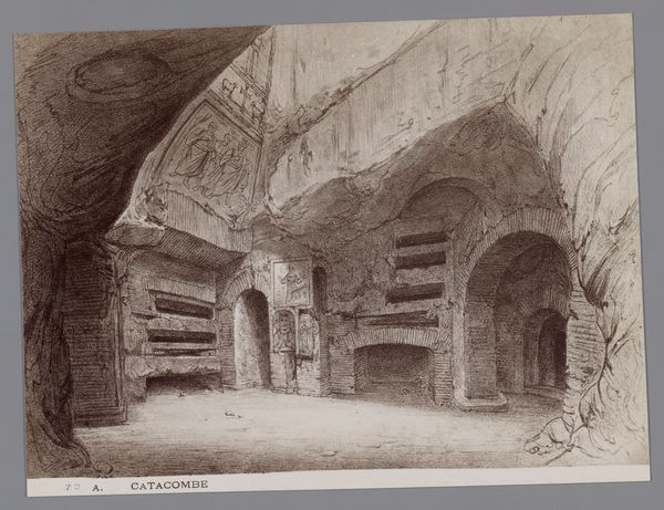 Curator: This gelatin silver print, taken between 1895 and 1915 by Clifton & Co., is entitled "Grotten van Elefanta bij Mumbai," or the Elephanta Caves near Mumbai. What strikes you immediately? Editor: An imposing sense of stillness. It feels almost prehistoric, the heavy columns and rough-hewn ceiling give it a timeless, primordial feeling. Curator: Indeed. These caves represent a significant example of Indian rock-cut architecture, filled with symbolism from diverse Hindu and Buddhist beliefs. This particular view captures the cave's pillared hall, known for its elaborate carvings. The photograph itself was taken during a period of increased colonial interest in documenting ancient Indian sites. How might that historical context inform our understanding? Editor: I think that this visual documentation plays a vital role, it serves as an archive preserving the caves cultural significance and the intertwined religious traditions of Hinduism and Buddhism. Each column and carving echoes symbolic forms which in their execution tell stories of ancient philosophical narratives. It is a cultural memory made visible, one of time, belief, and devotion. Curator: Exactly. The very act of photographing the caves speaks to issues of power, representation, and the gaze, which can’t be ignored. Consider, for example, how gender, class, and caste operate within colonial depictions. How do photographs like these, especially disseminated for Western audiences, reinforce particular narratives? Editor: Interesting… For Western audiences, there could be interpretations centered on ideas like Orientalism, portraying the cave as exotic and outside the experience of modernity. However, the photographic medium can transcend and present as a common, foundational heritage that encourages mutual interest in preservation across different cultural landscapes. It acts as an artifact which binds history. Curator: Absolutely. This image presents us not merely a site but invites a complex, and at times uncomfortable conversation regarding its interpretation and cultural significance and about how these spaces reflect, refract, and resist colonial influence and narratives. Editor: This exchange helped me grasp better how one visual source has many layered perspectives of history that require continuous analysis of socio-political settings and cultural symbology. Thank you.