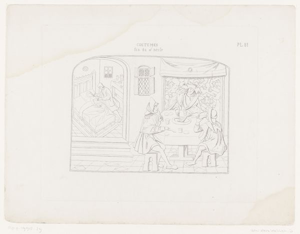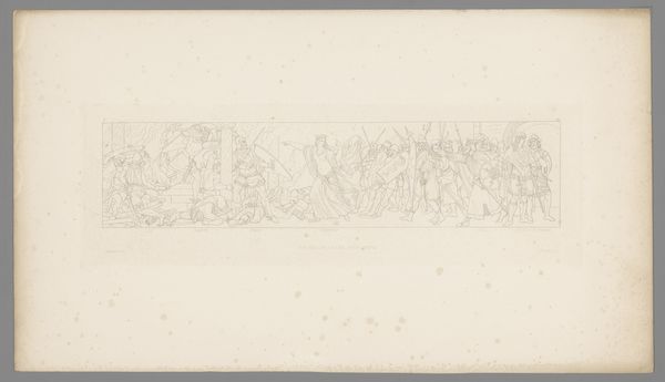 Editor: Here we have Agnes Slott-Møller’s 1895 pencil drawing, "Udkast til tympanonrelief på Københavns Rådhus"—a preliminary sketch for a tympanum relief at Copenhagen City Hall. The medieval style, coupled with the somewhat crude drawing strokes, make me feel like I am looking at something ancient. What feeling do you get from the piece? Curator: Ah, yes. The beauty of a preliminary sketch, isn't it? You're catching a thought as it takes form. What strikes me is the intention. This drawing, still so raw, breathes with a profound reverence for history, attempting to echo, I believe, the grandeur and gravity of the past in the architecture of the present. Editor: I definitely see what you mean. Is it referencing a specific historical moment? Curator: Perhaps more a sentiment than a specific moment. Think of the grand narratives often depicted in medieval cathedrals, stories of governance, of collective identity carved in stone for the ages. Don't you feel that echoing here, an attempt to embed civic pride into the very structure of the building? Editor: Absolutely! I now notice the many small figures at the bottom; perhaps this section represents the population it hopes to govern and give back to. How wonderfully quaint! I do have to wonder, though—did Slott-Møller fully pull this vision off in the final work? Curator: An intriguing question! It pushes me to consider the limitations and opportunities presented when transitioning from initial dream to realized form. What do you think gets lost, and what, perhaps, is gained in translation? Editor: That's really neat to consider; it adds to the thought process and emotion involved! Thank you. Curator: My pleasure. And thank you for seeing it with fresh eyes. It’s a delightful thing, rediscovering a familiar work through the wonder of another.