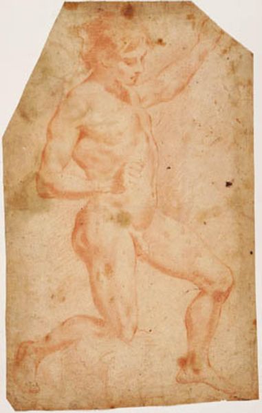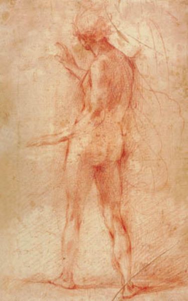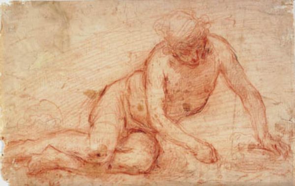 Francesco Montelatici rendered this sanguine drawing of a male nude, seemingly hauling a net, sometime in the 17th century. The act of pulling or dragging is visually arresting and rich with cultural memory. Consider the ancient Greek sculptures of struggling figures, their faces contorted in agony as they strain against an unseen force. Even in the Renaissance, Michelangelo masterfully captured the human form under duress, echoing the dynamism of antiquity. Here, Montelatici conveys a similar tension through the taut muscles and sinuous pose of his figure. One can also observe it in the emotional and psychological states – think of the primal human experiences, of the effort, the burden, and the perpetual struggle against forces unseen. And so, this motif resurfaces, echoing across centuries, forever imprinted in our collective consciousness.