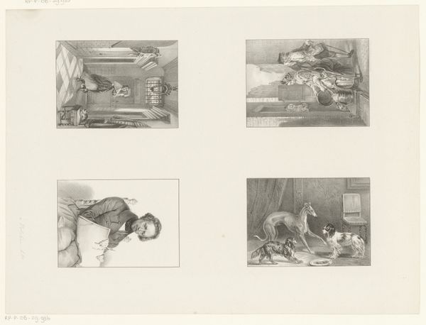Curator: Right now, we're looking at "Interior of a Military Hospital," an etching by Eugène Delacroix, likely created between 1820 and 1828. It's currently held at the Metropolitan Museum of Art. Editor: Ugh. Stark. Bleak. It hits you immediately with the grays and blacks. Like wading into a damp, dimly lit cellar. Curator: It's a powerful representation of Romanticism's engagement with realism, especially depicting somber social conditions and a clear interest in narrative. The artist pulls no punches here. Editor: True. The stark contrast enhances that, doesn't it? The dark background against those almost ghostly figures on the beds... Gives me the chills. It's like witnessing something profoundly intimate, yet distant. Curator: Delacroix’s choice of a military hospital interior exposes the consequences of warfare and human suffering—themes prevalent in Romantic art—but with a decidedly Realist focus on the specific details. How suffering is rendered, received, and internalized, even. Editor: You said it. The figure tending to someone—perhaps a nurse or family member—has this deeply etched face, etched, just like the artwork, suggesting resilience maybe? The stoic nature of enduring even within despair. Curator: Exactly. The context of post-Napoleonic Europe also colors this piece, where society was reckoning with immense losses and widespread poverty. This print could also be considered a subtle critique of militarism, subtly questioning glory, rather than just portraying it. Editor: So, it isn’t just a scene; it's a commentary, layered with grief and critique of broader structures, masked under what can initially come across as a simple, dark room. I can see how the museum setting impacts our understanding, bringing context but also a layer of detachment. Curator: Indeed. It prompts the audience to confront uncomfortable realities often glossed over in history books, encouraging both contemplation and engagement. Editor: Yes. Ultimately it's one of those pieces you don't just look at. It makes you feel. Curator: Precisely. Delacroix’s intimate, empathetic representation elevates what would otherwise be a scene of despair to something resonant, prompting dialogues far beyond the historical frame of creation. Editor: Definitely leaves a lasting mark. Like a lingering shadow of understanding of what someone went through.