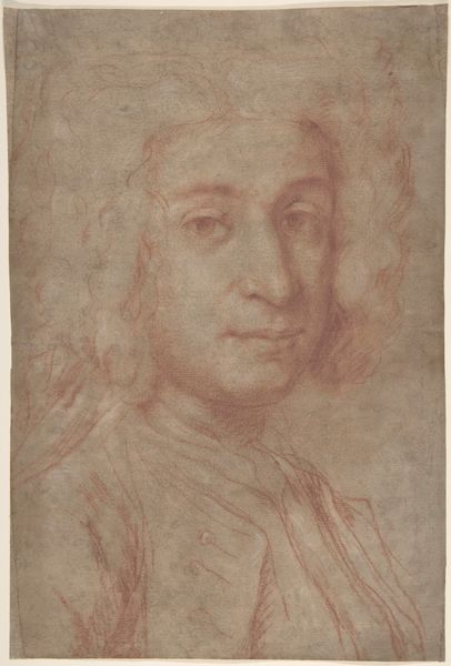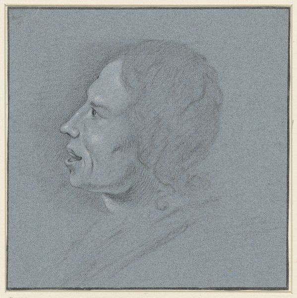 Editor: Here we have Marcus Tuscher's "Portrait of a Younger Man," a pencil drawing from around 1728-1731. The cool blue paper lends the piece a serene, almost melancholic feel. What strikes you about this self-portrait? Curator: The averted gaze holds such significance, doesn’t it? It creates a sense of internal reflection, almost a reluctance to fully reveal oneself. In iconographic terms, this obliqueness can suggest contemplation, a turning inward to the psyche. Are you familiar with physiognomy? Editor: I’ve heard of it, the idea that facial features reflect inner character? Curator: Precisely! Consider the long, elegant nose. A feature often associated with refinement and intellect, yet rendered with a soft, almost vulnerable touch here. The curl of the hair mirrors this ambiguity, signifying both style and a loosening of social constraint. I find myself pondering his inner world: what stories do those eyes conceal? Editor: It's interesting how those little details contribute to an overall sense of him. I guess the 'Baroque' tag is more subtle here. The emotion and self-awareness feel pretty modern. Curator: Modern in sentiment, perhaps, but still tethered to its time. Consider how a contemporary viewer may have interpreted such imagery. What societal expectations of appearance might have been subverted? Editor: That’s a great point. So even in its perceived “modernity,” it’s embedded in a specific historical and social context. Curator: Precisely! And in appreciating such artworks, we engage in an act of cultural retrieval, uncovering not only the visual artistry, but also the embedded narratives they carry. Editor: I hadn't considered how actively we are deciphering clues left behind. I’ll definitely look at portraits differently from now on.