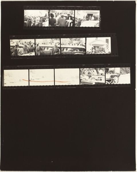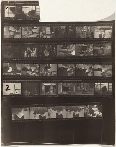 This piece, "South of France--Trip to Spain A9" is by Robert Frank. He made it without specifying when and used, presumably, photographic film. Looking at this contact sheet, I’m immediately drawn to its raw, unfiltered quality. It’s like a peek behind the curtain, revealing the artist’s process. It shows you the texture of the film, with all the imperfections that make it real. The high-contrast black and white palette is classic Frank, it's stark and unforgiving, echoing the mood in his famous photobook, "The Americans." I love how the arrangement of the film strips, the messy annotations, and the way they’re casually taped onto the surface. It’s like a collage, a visual diary of a road trip, and he is communicating in a language only accessible to his own hand. There’s a sense of spontaneity that reminds me of the work of Jack Kerouac. Both artists captured the immediacy of life on the road, the fleeting moments of beauty, and the gritty realities of post-war America and beyond. It's a reminder that art is a conversation, a series of echoes and influences that ripple through time.