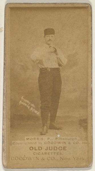 Hendrik Herman van den Berg made this photograph of a horse named Bobbie and his handler using the gelatin silver process. This method, dominant from the 1880s onward, involved coating a glass or film base with a light-sensitive emulsion of silver halides suspended in gelatin. Consider the social context of this image. Photography, once a laborious and expensive process, had become increasingly accessible thanks to industrial production. The rise of amateur photography coincided with a growing fascination with animals, particularly horses, and a romanticized vision of rural life. This image captures a moment of quiet dignity, as Bobbie and his handler stand patiently before the camera. The gelatin silver process allowed for relatively quick exposure times and sharp detail, evident in the texture of the horse's coat and the handler's suit. While mass production democratized photography, skill remained essential in capturing a compelling image. This photograph represents the intersection of industrial technology and artistic vision, blurring the lines between commercial practice and fine art.