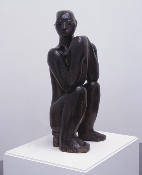 Editor: This is Barbara Hepworth's "Bicentric Form," a sculpture currently held in the Tate collection. The use of stone is striking. What can you tell me about it? Curator: The act of carving itself is key here. Hepworth's direct engagement with the stone—the labor, the physicality—reveals a commitment to the material. How does the sculpture’s form challenge traditional notions of the sculpted figure? Editor: It feels very modern. I think the negative space really impacts the form. Curator: Precisely! The holes aren't just absences; they're integral to the sculpture. They force us to consider the relationship between the object and the space it occupies, questioning the boundaries of sculpture itself. Hepworth’s methodology is critical to consider. Editor: I see how the material and process create a dialogue. Thanks! Curator: Indeed, a dialogue between the sculptor, the stone, and the viewer.