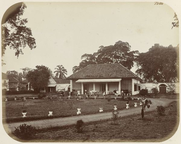 This albumen print of a house, likely made in the late nineteenth century, was created by Kassian Céphas, a Javanese photographer working in the Dutch East Indies. Here, Céphas depicts a "Woonhuis", a type of dwelling that emerged during the colonial period. The image creates meaning through its depiction of social space, as a well-tended garden and the large veranda of this particular house evoke the lifestyle of the European elite in Java. The very act of photographing such a building also speaks to the photographer’s position within that society and the development of the Indies as a site of cultural exchange. Understanding this photograph requires that we consult historical records from the colonial era and, perhaps more importantly, recent postcolonial studies. It provides a visual representation of the complex social structures that shaped artistic production in the Dutch East Indies.