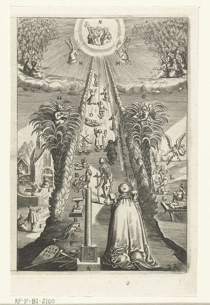 This emblem of the Virgin and Child was made by Boëtius Adamsz. Bolswert, using the technique of engraving. Look closely, and you’ll see that the image is composed entirely of lines, cut into a metal plate with a tool called a burin. Engraving like this was part of the print industry. It allowed images to be reproduced in large numbers, acting as a form of mass media in its day. The sharp, precise lines create a sense of clarity and detail, perfectly suited for depicting complex religious scenes. The layers of meaning in the image are like the process of its making: carefully considered and incised on the viewer’s mind. Note how the composition is divided into earthly and heavenly realms, connected by themes of salvation, death, and after-life. This print acted as a vehicle for devotion, and also as a kind of symbolic instruction. Ultimately, the printmaking process itself—laborious and demanding—mirrors the spiritual journey it illustrates, requiring patience, skill, and a commitment to detail. It's a reminder that the making of an image can be as meaningful as the image itself.
