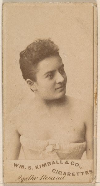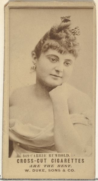 This small card featuring Kate Uart was produced by Allen & Ginter for Virginia Brights Cigarettes as part of a series showcasing actors and actresses. Made in the United States, this card reflects the late 19th-century's burgeoning culture of celebrity and consumerism. The image's meaning lies in the convergence of entertainment, advertising, and the era's social mores. The theatrical profession, while gaining popularity, still carried a certain social stigma. By associating their product with figures like Uart, the cigarette company sought to capitalize on her fame while also lending a veneer of respectability to both the product and the performer. Uart’s fame also helped to spread an ideal of beauty. What we see on the card is a highly stylized portrait following particular conventions which were taking hold in institutions such as photography studios and beauty parlors. Understanding such ephemera requires delving into the social and economic conditions of the time, examining sources like theatrical reviews, advertising records, and social commentaries, as well as the institutional histories of entertainment and advertising. This helps us see how cultural values are negotiated and disseminated through commercial images.
