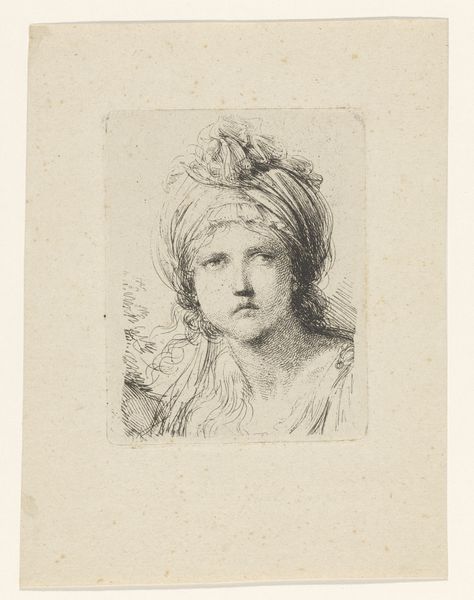 Editor: Here we have "Woman with a Turban with a Hanging Veil, Seen from the Back," created around 1649-1650 by Stefano della Bella, a drawing in ink. I'm immediately struck by the detailed line work, especially given how delicate the subject is. What can you tell me about it? Curator: Let’s consider the labor invested in such a detailed drawing. Think about the artisanal skill needed to create inks with such subtlety and permanence, and the deliberate act of mark-making repeated to describe her image. How might the exotic nature of the turban relate to trade and the influx of goods from distant lands? Editor: That's interesting. I hadn't thought about the turban in terms of trade routes and imported goods, but I see what you mean. Do you think the fact that we only see her from the back changes how we understand the work? Curator: Precisely! Instead of focusing on the individual identity, it encourages a fascination with the *materiality* of her clothing. The veil, the turban...these are tactile elements that hint at the luxuries afforded by a merchant economy. How are we complicit as consumers in portraying these exotic figures as objects? Editor: I guess I was focusing on the person represented rather than the actual processes involved in creating and circulating images. It's kind of sobering to consider. Curator: It challenges the very notion of portraiture. Isn’t it really about representing an idealized consumer culture and, potentially, fetishizing the exotic “other”? What purpose do the materials of art and costume play in upholding the established power dynamics? Editor: Food for thought, indeed. It’s amazing how considering materials and social context can reveal deeper meanings hidden in what seems like a simple drawing. Curator: Indeed. Considering the value of materials and the cultural labor expands our understanding of what exactly gives this artwork its historical relevance today.