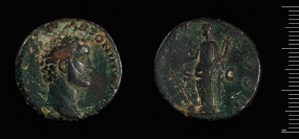 Editor: This is a Dupondius of Antoninus Pius. The portraits are so small, yet they speak volumes about power. What narratives do you think these coins whisper from the past? Curator: Ah, these humble coins. More than pocket change, they're echoes of empire. Each one a tiny billboard, broadcasting the emperor's image and virtues. Think of them as portable propaganda! Editor: Propaganda? So even my spare change could be trying to influence me? Curator: (laughs) Absolutely! Every symbol, every inscription was carefully chosen to project strength, prosperity, and divine favor. It's a potent little package of persuasion, wouldn't you say? Editor: Definitely gives a new meaning to "money talks." Thanks for sharing your insights! Curator: My pleasure! It's a reminder that even the smallest objects can hold the biggest stories.
