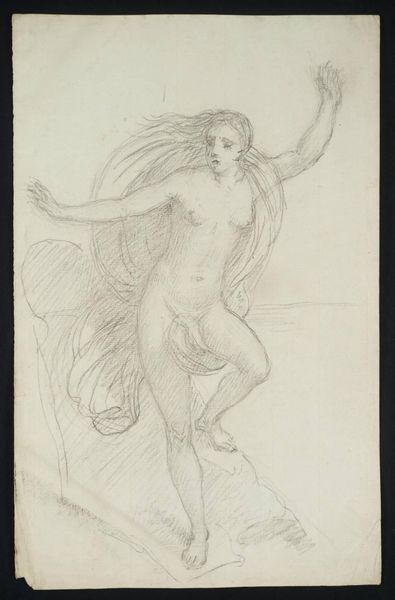 Editor: Here we have "A Flying Muse, with Harp" by an anonymous 19th-century British artist. It's a delicate sketch, and it feels almost ethereal, like a dream taking flight. What captures your imagination about this piece? Curator: It's like catching a whisper of a thought, isn't it? The flowing lines suggest movement and a sense of liberation. I think about the artist's own longing for creative inspiration, perhaps even a touch of playful mischief. Does it make you want to sing? Editor: It does, actually! The sketch feels light and hopeful. I really appreciate your perspective. Thanks! Curator: And thank you. It is in shared reflection that we come to fully see.