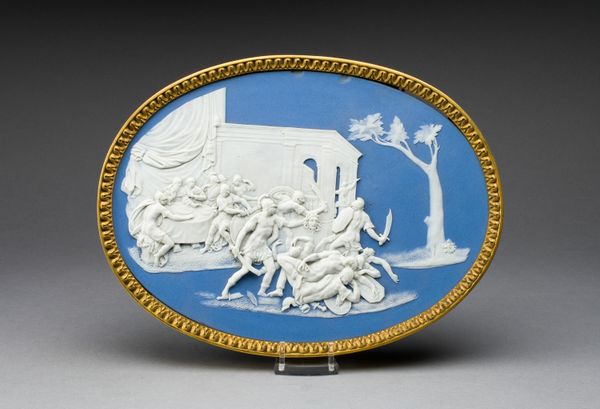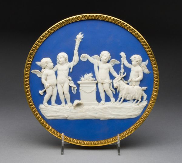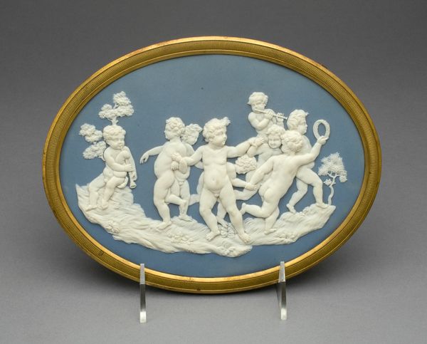 The Wedgwood Manufactory created this plaque with Bacchus, Fauns, and Silenus, using Jasperware, a type of stoneware known for its matte, unglazed finish. The scene is drawn from classical antiquity, representing Bacchus, the god of wine, fertility, and theatre, surrounded by fauns and Silenus, all figures associated with revelry and the uninhibited enjoyment of life. Wedgwood's choice to depict classical subjects aligns with the 18th-century fascination with ancient Greece and Rome, a period that significantly shaped European art, architecture, and thought. Yet, it is impossible not to consider how these depictions of bodies, particularly the cherubic, often feminized forms of Bacchus and his entourage, reflect and shape the era's views on sensuality, innocence, and the body. What happens when we read these classical scenes through the lenses of gender and power? How might these supposedly innocent depictions participate in broader cultural narratives about desire, pleasure, and control? The plaque invites us to think about the complex interplay between historical representation, cultural values, and the enduring power of art to shape our understanding of ourselves.